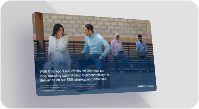 With this report and others, we continue our long-standing commitment to accountability for delivering on our ESG strategy and initiatives. We must innovate and evolve to meet the challenges before us, but it is not our journey alone. We welcome ideas and partnerships, and hope you will join us to drive societal impact, for everyone. Visit Dell.com/ESG for more information.