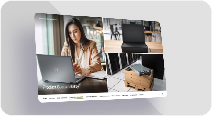 Our purpose in action | Dell Page 61 Page 63ADVANCING SUSTAINABILITY Product Sustainability INTRO OUR PLAN GOALS DASHBOARD ADVANCING SUSTAINABILITY CULTIVATING INCLUSION TRANSFORMING LIVES ETHICS & PRIVACY SUPPLY CHAIN BY THE NUMBERS APPENDIX 62
