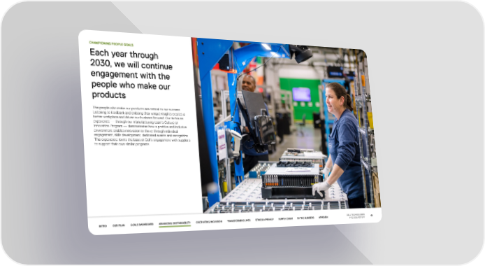 CHAMPIONING PEOPLE GOALS Each year through 2030, we will continue engagement with the people who make our products The people who make our products are critical to our success. Listening to feedback and enlisting their unique insights creates a better workplace and drives our business forward. Our in-house experience — through our manufacturing team’s Culture of Innovation Program — demonstrates how a positive and inclusive environment enables innovation to thrive through individual engagement, skills development, dedicated events and recognition. This experience forms the basis of Dell’s engagement with suppliers to support their own similar programs. INTRO OUR PLAN GOALS DASHBOARD ADVANCING SUSTAINABILITY CULTIVATING INCLUSION TRANSFORMING LIVES ETHICS & PRIVACY SUPPLY CHAIN BY THE NUMBERS APPENDIX DELL TECHNOLOGIES 60 FY22 ESG REPORT