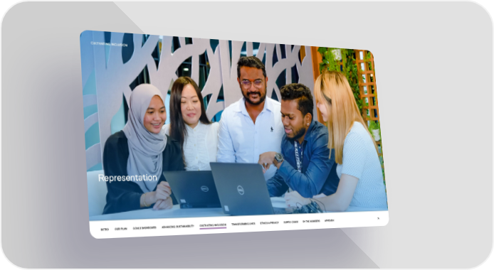 Our purpose in action | Dell Page 70 Page 72CULTIVATING INCLUSION Representation INTRO OUR PLAN GOALS DASHBOARD ADVANCING SUSTAINABILITY CULTIVATING INCLUSION TRANSFORMING LIVES ETHICS & PRIVACY SUPPLY CHAIN BY THE NUMBERS APPENDIX 71