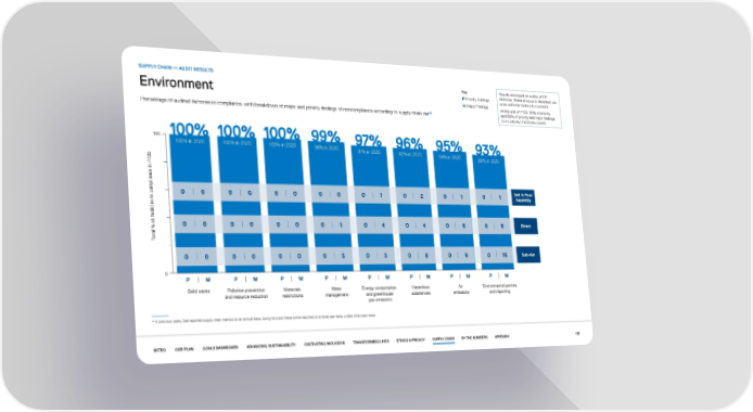 SUPPLY CHAIN — AUDIT RESULTS Key Results are based on audits of 317 P Priority Findings factories. When an issue is identified, we Environment work with the factory to correct it. M Major Findings At the end of FY22, 90% of priority 62 and 69% of priority and major findings Percentage of audited factories in compliance, with breakdown of major and priority findings of noncompliance according to supply chain tier (cumulatively) had been closed. 100100100100100100100100 100%100%100%100%100%100%100%100% 100%100%100%100%100%100%100%100% 100%100%100%100%100%100%100%100% 99%99%99%99%99%99%99%99% 9797979797979797%%%%%%%% 96%96%96%96%96%96%96%96% 95%95%95%95%95%95%95%95% 100100100100100100100100% in % in % in % in % in % in % in % in 20202020202020202020202020202020 100% in 100% in 100% in 100% in 100% in 100% in 100% in 100% in 20202020202020202020202020202020 100% in 100% in 100% in 100% in 100% in 100% in 100% in 100% in 20202020202020202020202020202020 98% in 298% in 298% in 298% in 298% in 298% in 298% in 298% in 2000000002222222200000000 999999997% in 27% in 27% in 27% in 27% in 27% in 27% in 27% in 2000000002222222200000000 93%93%93%93%93%93%93%93% 999999992% in 2% in 2% in 2% in 2% in 2% in 2% in 2% in 20202020202020202020202020202020 94% in 94% in 94% in 94% in 94% in 94% in 94% in 94% in 20202020202020202020202020202020 88% in 288% in 288% in 288% in 288% in 288% in 288% in 288% in 2000000002222222200000000 00000000 1 Dell & FinalDell & FinalDell & FinalDell & FinalDell & FinalDell & FinalDell & FinalDell & Final 00000000 00000000 00000000 00000000 00000000 00000000 00000000 00000000 1111111 00000000 22222222 00000000 11111111 00000000 11111111 AssemblyAssemblyAssemblyAssemblyAssemblyAssemblyAssemblyAssembly acilities in compliance in acilities in compliance in acilities in compliance in acilities in compliance in acilities in compliance in acilities in compliance in acilities in compliance in acilities in compliance in Direct 00000000 00000000 00000000 00000000 00000000 00000000 00000000 11111111 00000000 44444444 00000000 44444444 00000000 66666666 00000000 55555555 DirDirDirDirDirDirDirectectectectectectect al oal oal oal oal oal oal oal o ooooooootttttttt Sub-tier 00000000 000 33333333 00000000 33333333 Sub-Sub-Sub-Sub-Sub-Sub-Sub-tiertiertiertiertiertiertier 00000000 00000 000000 88888888 00000000 00000000 00000000 00000000 00 00000000 99999999 00000000 1515151515151515 00000000 PP MMMMMMM PPPPPPPP MMMMMMMM PPPPPPPP MMMMMMMM PPPPPPPP MMMMMMMM PPPPPPPP MMMMMMMM PPPPPPPP MMMMMMMM PPPPPPPP MMMMMMMM PPPPPP M PPPPPPPP MMMMMMMM Solid wSolid wSolid wSolid wSolid wSolid wSolid wSolid wastastastastastastastasteeeeeeee PPPPPPPPollution prollution prollution prollution prollution prollution prollution prollution preeeeeeeevvvvvvvvenenenenenenenention tion tion tion tion tion tion tion MaMaMaMaMaMaMaMatttttttterials erials erials erials erials erials erials erials WWWWWWWWaaaaaaaatttttttter er er er er er er er EnerEnerEnerEnerEnerEnerEnerEnergy consumpgy consumpgy consumpgy consumpgy consumpgy consumpgy consumpgy consumption tion tion tion tion tion tion tion HazarHazarHazarHazarHazarHazarHazarHazardous dous dous dous dous dous dous dous Air Air Air Air Air Air Air Air EnEnEnEnEnEnEnEnvirvirvirvirvirvirvirvironmenonmenonmenonmenonmenonmenonmenonmenttttttttal permital permital permital permital permital permital permital permits s s s s s s s and rand rand rand rand rand rand rand resouresouresouresouresouresouresouresource rce rce rce rce rce rce rce reduceduceduceduceduceduceduceductiontiontiontiontiontiontiontion rrrrrrrrestricestricestricestricestricestricestricestrictionstionstionstionstionstionstionstions managemenmanagemenmanagemenmanagemenmanagemenmanagemenmanagemenmanagementttttttt and grand grand grand grand grand grand grand greenhouse eenhouse eenhouse eenhouse eenhouse eenhouse eenhouse eenhouse substsubstsubstsubstsubstsubstsubstsubstancesancesancesancesancesancesancesances emissionsemissionsemissionsemissionsemissionsemissionsemissionsemissions and rand rand rand rand rand rand rand reportingeportingeportingeportingeportingeportingeportingeporting gas emissionsgas emissionsgas emissionsgas emissionsgas emissionsgas emissionsgas emissionsgas emissions * In previous years, Dell reported supply chain metrics on an annual basis. Going forward these will be reported on a fiscal year basis, unless otherwise noted. INTRO OUR PLAN GOALS DASHBOARD ADVANCING SUSTAINABILITY CULTIVATING INCLUSION TRANSFORMING LIVES ETHICS & PRIVACY SUPPLY CHAIN BY THE NUMBERS APPENDIX 135
