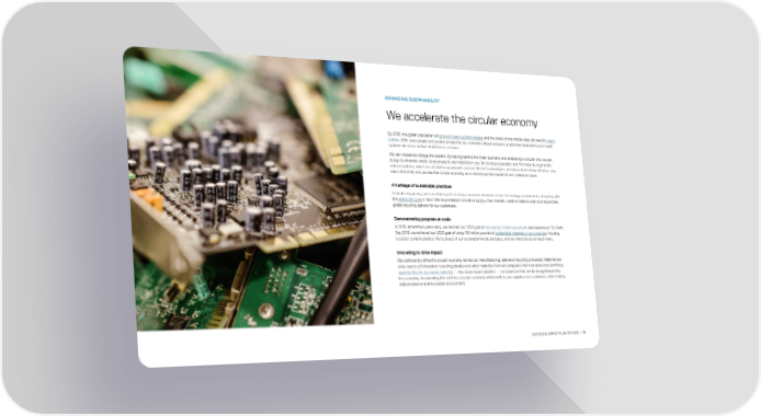 ADVANCING SUSTAINABILITY We accelerate the circular economy By 2030, the global population will grow by nearly a billion people, and the ranks of the middle class will swell by nearly 2 billion. With more people and greater prosperity, our economy will put pressure on planetary boundaries and social systems like never before. But there is a choice. We can choose to change the system. By leaving behind the linear economy and embracing a circular one, we can design to elimina te waste, keep products and materials in use for as long as possible, and find ways to regenerate natural systems, which are all vital to our planet’s survival. At Dell Technologies, we believe technology will play a key role in this shift, and we see the circular economy as a critical business model for our collective future. A heritage of sustainable practices From the beginning, we have taken pride in being conscious stewards of our technology and products, designing with the entire life cycle in mind. We’ve pioneered innovative supply-chain models, creative material uses and responsible, global recycling options for our customers. Demonstrating progress at scale In 2018, almost two years early, we reached our 2020 goal of recovering 2 billion pounds of used electronics. On Earth Day 2019, we achieved our 2020 goal of using 100 million pounds of sustainable materials in our products, including recycled-content plastics. We’re proud of our accomplishments and pace, and we intend to do so much more. Innovating to drive impact We continue to refine the circular economy across our manufacturing, sales and recycling processes. Materials are a key source of innovation: recycling plastics and other materials from old computers into new parts and identifying opportunities to use waste materials — like ocean-bound plastics — as resources that can be brought back into the econom y. Accelerating this shift to a circular economy will benefit us, our suppliers and customers, while helping restore balance to the broader environment. OUR SOCIAL IMPACT PLAN FOR 2030 / 11